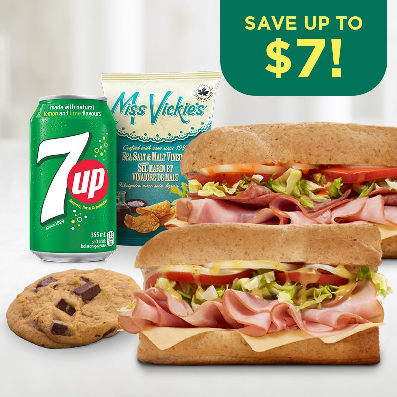 Get 2 small classic sandwiches, 2 canned beverages, 2 cookies and 2 bag of chips for only 19.99$! Sandwich options include : The Bab, The Ham, The Turkey, The Gino or The Dagwoods.